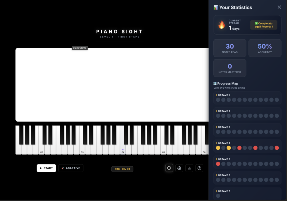- 📈 Smart Analytics: Tracks your accuracy, speed, and "weak zones" (specific notes or keys you struggle with).